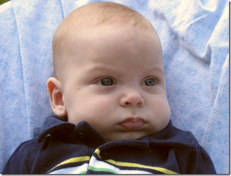 Collin was a ham that night…. he even felt the need to steal the show by doing his ‘deed’ during the QUIET part!!We see this look all the time right now. He seriously bites his hand to the point of leaving tiny scratches and suck marks. Who knows maybe he’s working on an early tooth!